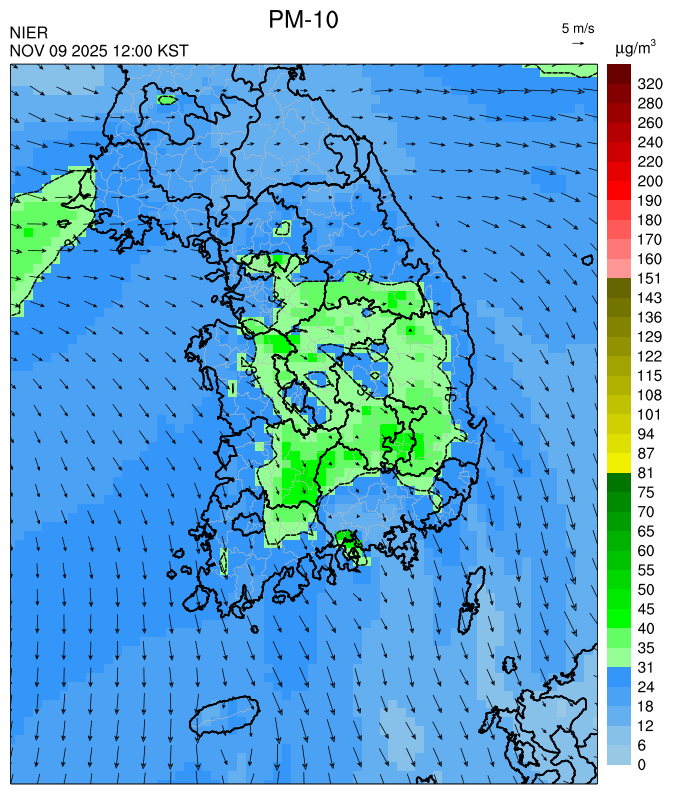 ○ [미세먼지] 오전에 중서부 지역으로 '보통' 수준의 국외 미세먼지가 북서풍을 타고 유입되겠고, 오후부터 남부 지역으로 확대되어 대부분의 지역이 일평균 '보통' 수준일 것으로 예상됩니다.